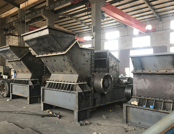 本設備主要有回轉部、護板部和箱體部組成,回轉部的輪芯上有多個非重疊排列的錘架,錘頭固定在錘架上,錘頭寬度大于錘架和輪轂,輪芯由數個輪轂組成一體,固定于主軸上,主軸兩端用滾動軸承座支承于機架上,護板組成分成若干塊固定于箱體上,保護箱體不受磨損,并形成不同型式的反擊破碎腔。箱體分成上下兩部分,用螺拴連接,便于拆裝和檢修。