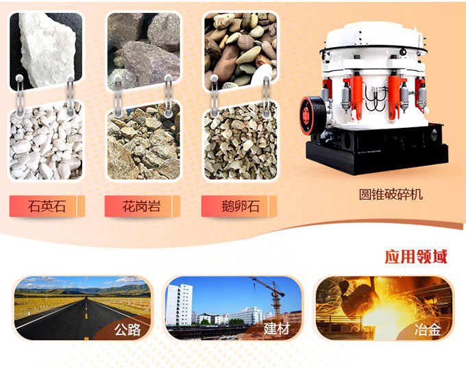圓錐式破碎機使用于中、細碎普氏硬度f≤5-16中等以上硬度的各種礦石和巖石。圓錐破碎機分粗碎圓錐破碎機、中碎圓錐制砂機和細碎圓錐制砂機三種,破碎腔型式由礦石用途決定,標準型運用于中碎;中型適用于中細碎;短頭型適用于細碎。